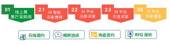 2.“90天线上贸易”增效服务:通过对海量采购商的大数据分析,AI智能推荐匹配的活跃采购商。期间通过线上、线下多种形式,持续精准引流;共享平台部分注册活跃买家资源。