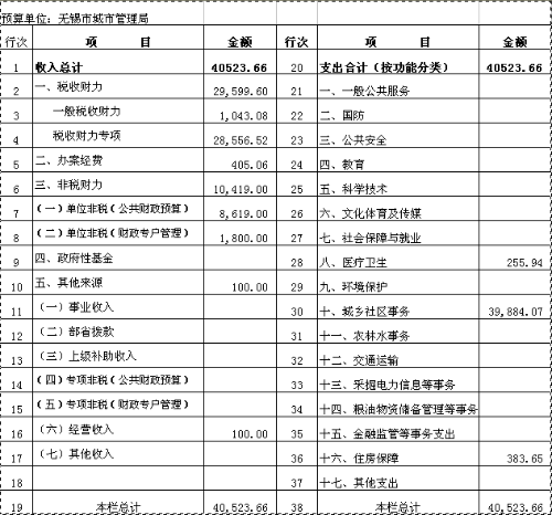 2016年城管局部门收支预算表