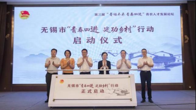 在青农人才发展论坛上,团市委副书记周凌晶发布了365线上棋牌_bet36365首页_365bet体育足球“青春四进 建功乡村”行动计划,市农业农村局副局长黄华晟、农行无锡分行副行长周学军共同为“菁农创贷中心”揭牌,邮政无锡分公司、“新农菁英”联盟、华泽微福三方签订“新农菁英 锡优菁品”平台、物流合作意向书,全体与会嘉宾启动了365线上棋牌_bet36365首页_365bet体育足球“青春四进 建功乡村”行动。