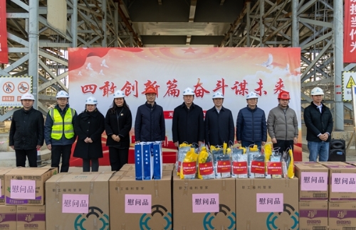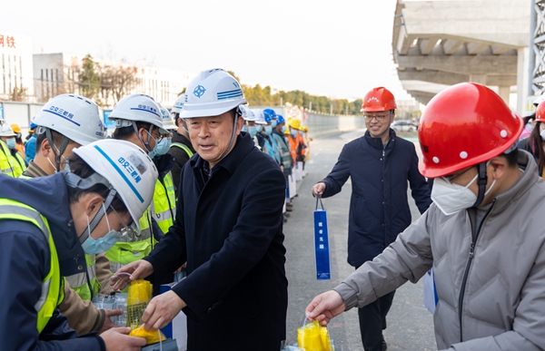 陈德荣为项目建设者送上了慰问品,并致以新春的问候,对大家响应“在岗过节”,坚守岗位表示感谢,将工会娘家人的关心关爱送到了一线人员身边。他嘱咐大家要咬定目标、保证质量、保障安全,以“敢为敢闯敢干敢首创”四敢精神奋力担当,以“起步就是冲刺,开局就是决战”的姿态为无锡高质量发展添砖加瓦。