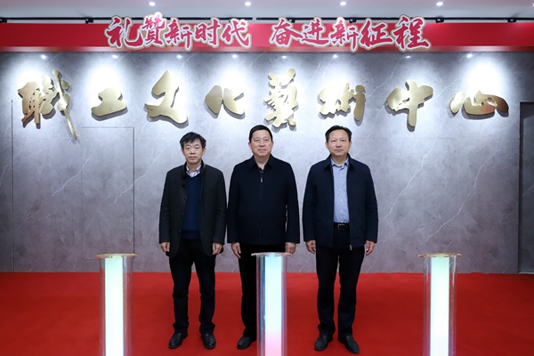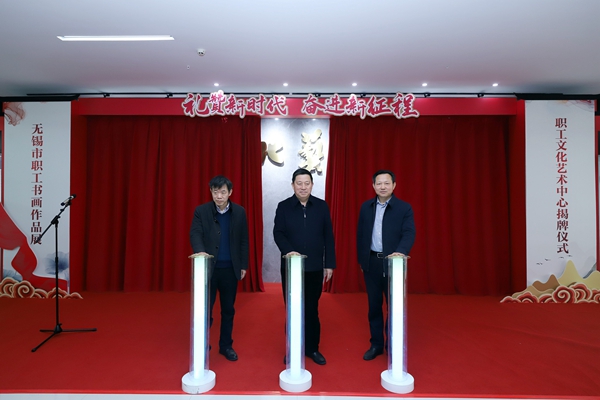 本网讯 2月3日,365线上棋牌_bet36365首页_365bet体育足球总工会举办“礼赞新时代,奋进新征程”365线上棋牌_bet36365首页_365bet体育足球职工书画作品展暨职工文化艺术中心揭牌仪式活动。市总工会主席陈德荣,市总工会党组书记、副主席吴涛,市文联党组书记、主席杨建等领导出席揭牌仪式并参观书画展。
